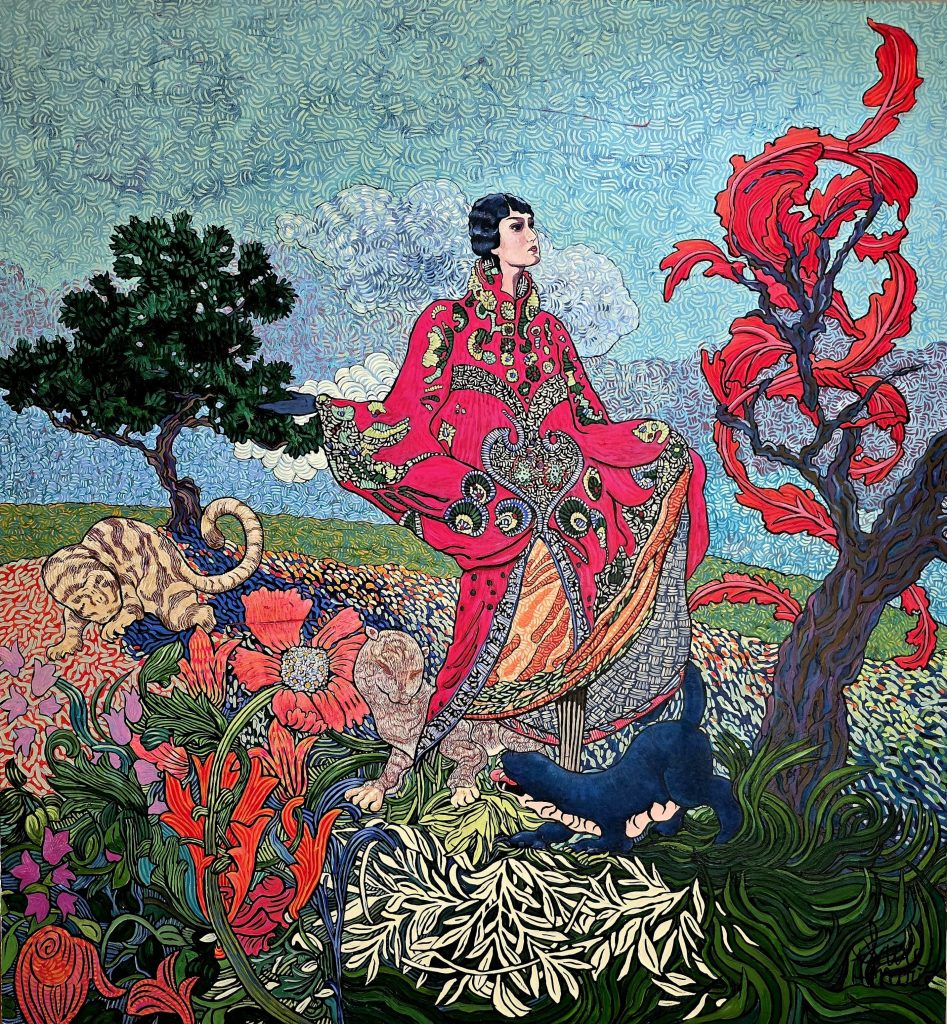 Her painting style shows influences from the post-impressionists, yet is undeniably contemporary, with an up-beat flamboyant character. Soffietti’ figures have secrets, and hint at an interior world within the picture frame. It is her wonderfully palpable painting style and bold colour choices that makes the 2D picture world seem more real than our very own.